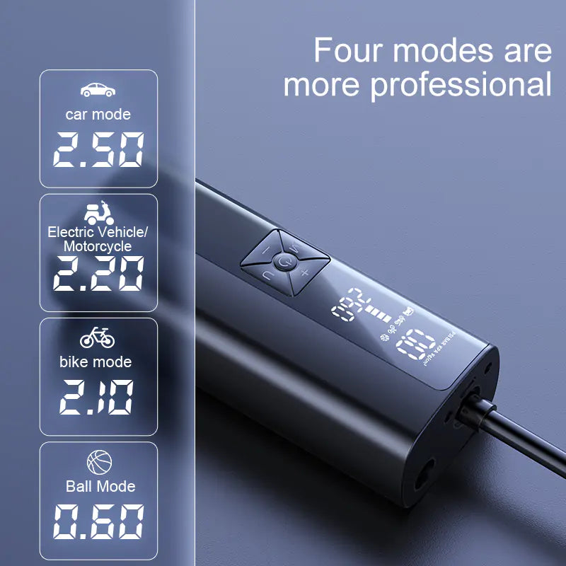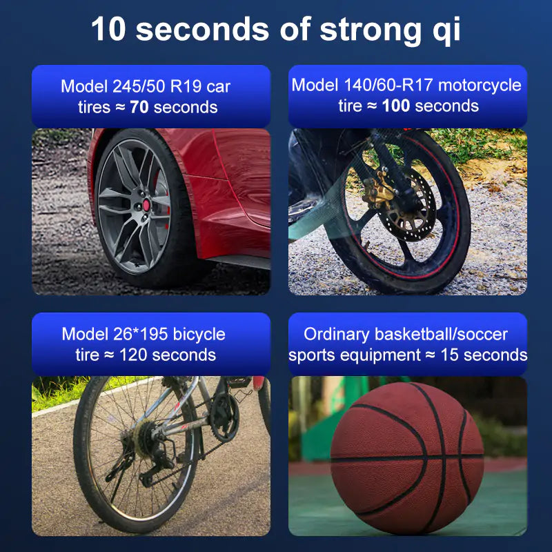 Equipped with a dual-screen digital display, you can easily monitor real-time tire pressure readings and preset values, allowing for precise inflation control. Say goodbye to over-inflated tires, as our inflator automatically halts pumping once the desired pressure is reached, preventing any potential damage.